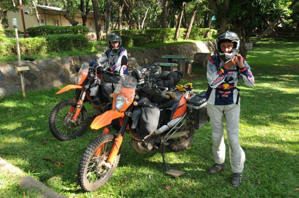 Der Kariba-Damm war eins der ganz großen Stauprojekte der 1950er Jahre. Der damit geschaffene Ort Kariba entwickelte sich zum Touristenzentrum. Das war mal… vom Tourismus ist so gut wie nichts übrig geblieben. Die Werbungen im Ort sind verblichen. Die Menschen ohne Arbeit. In der parkartigen Landschaft in wunderschöner Lage direkt am Ufer des Kariba-Sees campieren wir auf der Fläche des Kariba Moth Camps – als einzige Gäste… bis eines Tages die deutschen Biker Gerd und Silvia mit ihren KTM-Maschinen einlaufen...