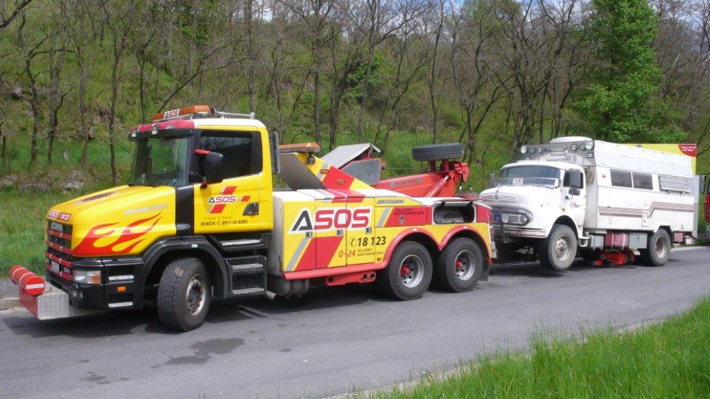 Glück im Unglück: Es läuft anders ab. Als ADAC-Plus-Mitglied wird mir (nach kurzem Telefonat mit der Zentrale in München) ein Abschleppwagen organisiert. Der schleppt uns nach Banska Bystrica zur Mercedes- Vertragswerkstatt. (Ein dickes Lob für den ADAC! Auch was die Kostenübernahme anbelangt.)