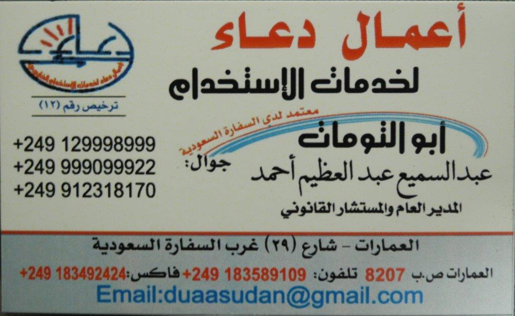 internationalen Eheschein, die Stimmigkeit wird geprüft. Die Agentur von Abdul Samie Ahmet ist vertrauenswürdig. Wenn man vor der Saudi Botschaft steht, geht rechts eine Straße weg, folge dieser Straße (ca. 150 Meter) bis rechts eine weitere Straße weggeht, dann ist die Agentur links ca. 80 Meter. Sie ist unscheinbar, es ist ein niedriges Gebäude. Nachfolgend die Business-Karte von Abdul.