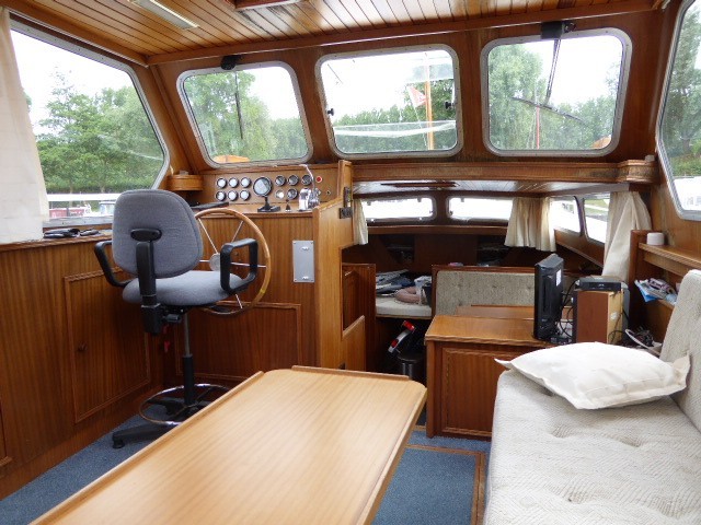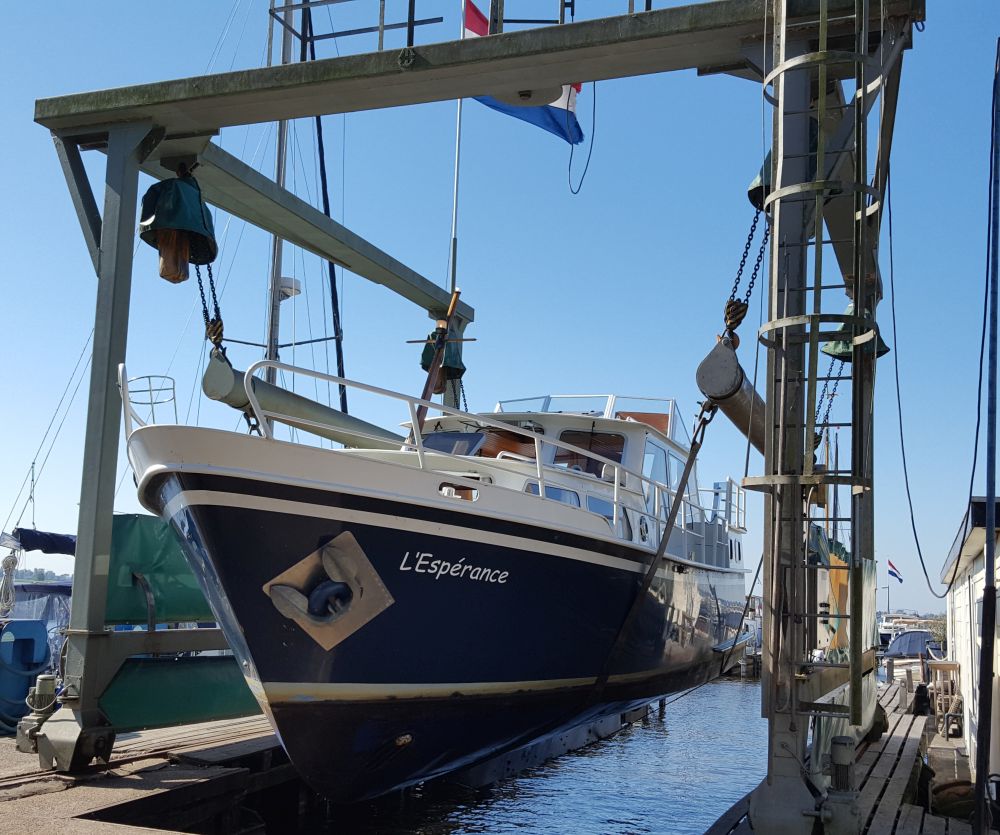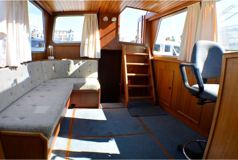 Eine Blauwe Hand 1170, Baujahr 1982 mit einem 6-Zylinder Mercedes Dieselmotor erfüllt die meisten unserer Anforderungen. Schnell ein Besichtigungstermin im Verkaufshafen des Maklers in Loosdrecht vereinbart und schon ein Wochenende später steht fest, dass die L'Esperance unser zukünftiger Reisebegleiter auf den Kanälen und Seen der Niederlande sein wird.